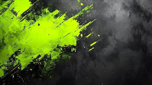 Dynamic lime green splash explodes across dark grey textured background. AI Generated