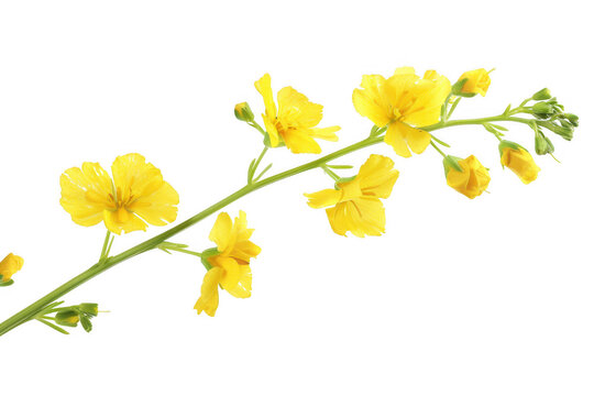 A vanilla orchid flower in full bloom, showcasing its delicate white petals and the green stem against a neutral background