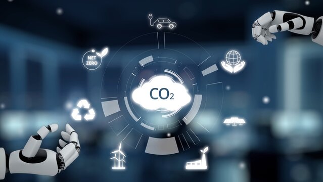 Modern power plant generating electricity with sustainable green strategies to reduce CO2 emissions. Clean energy initiatives and renewable resources for a greener future