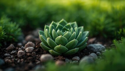 Fresh green succulent plants in garden