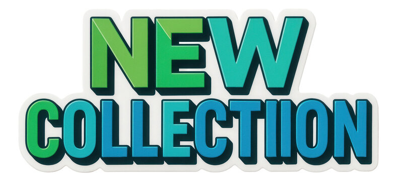 Blue and green tag sticker with NEW COLLECTION offer in bold modern style, vibrant retail promotion on transparent background.
