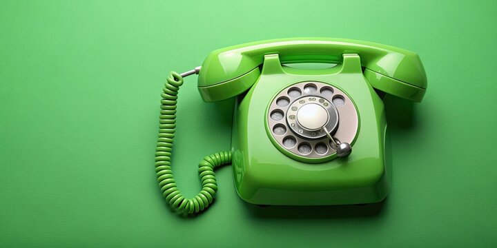 Vintage green rotary dial phone on green surface, retro, technology, communication, antique, old-fashioned, classic