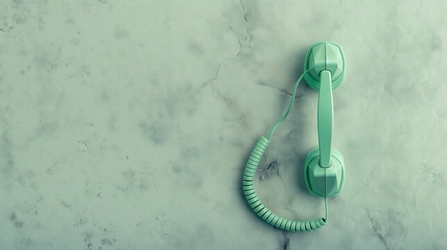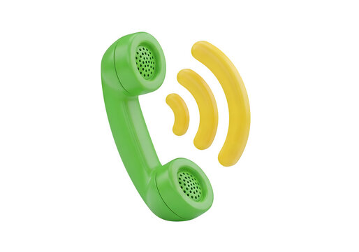 Green Telephone with Red Button on White Background