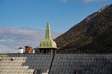 Cartoon illustration of a green top hat with a pale blue band, a symbol.
