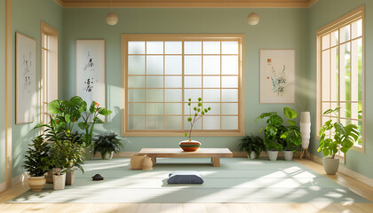 kitchen environment with green walls, adorned with simple yet beautiful decor and accessories.3d rendering