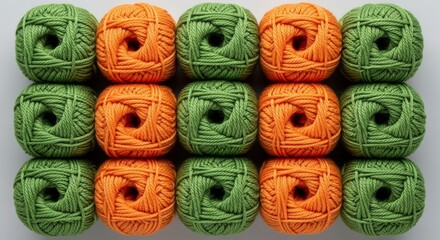 organized balls of orange and green yarn, background pattern, knitting and crafting graphic