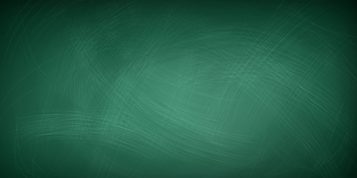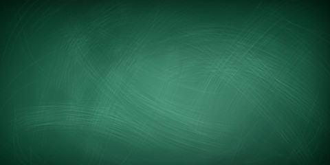 Realistic green chalkboard background. Dirty blackboard texture. Blank clasroom board. Space for advertising text and restaurant menu. Vector illustration.