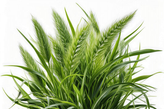 Natural textured background of green ornamental grass or plants with leaves of abstract shape closeup