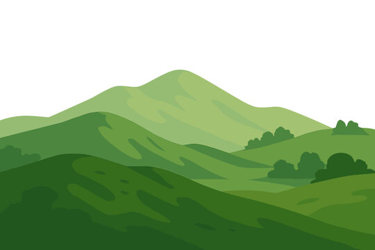 A serene natural landscape of vibrant green rolling hills with lush grass is set against a clean white background, evoking a sense of peace and open space that is ideal for eco-friendly themes