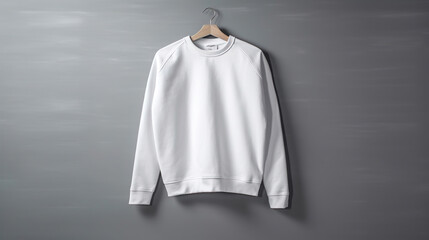 White sweatshirt on gray background. Mock up for advertise. Generative Ai