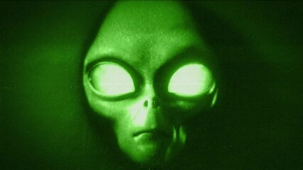 An Alien Grey face emerges in night vision