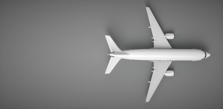 Commercial airplane on grey sky and clouds with copy space. Failed vacation. Hopeless and despair concept. Moody sky and transport plane. Sad emotional scene. Background of aircraft flight.