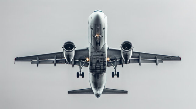 Sleek Airplane Front View. Isolated Model on Crisp White Background, Symbolizing Travel and Flight