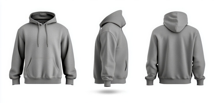 Grey hoodie template. Hoodie sweatshirt long sleeve with clipping path, hoody for design mockup for print, isolated on white background.
