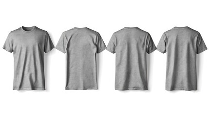 Heather grey t shirt front and back view flat lay concept, isolated on white background