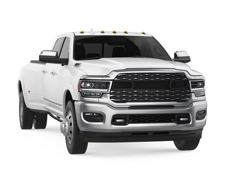 Modern truck with semi-trailer in completely gray color. Front side view isolated on white background.