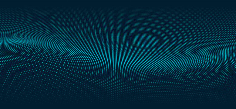 Abstract vector dot wave dark background. Blueprint style futuristic concept background with with smooth wave of particles.