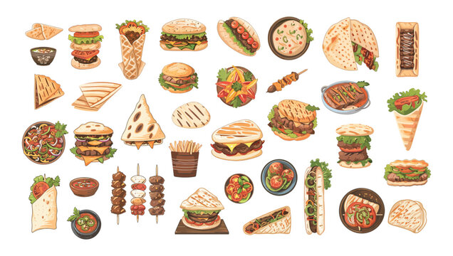 Colorful array of camping gear and outdoor cooking equipment illustrations