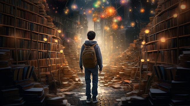 Teen Adventurer with School Backpack, Enchanting Dreams, generative ai