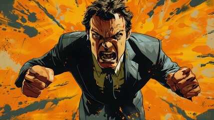 man in suit screaming with hands clenched