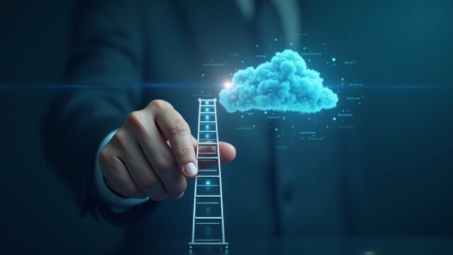 Gripping hands on ladder emanating suspense and tension