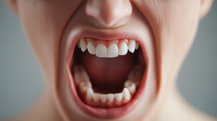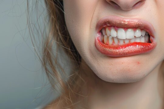 A close-up image of a womans mouth with her teeth clenched, showcasing a determined expression