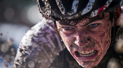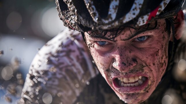 The sweatdrenched jersey and gritted teeth showing the intensity of the race.