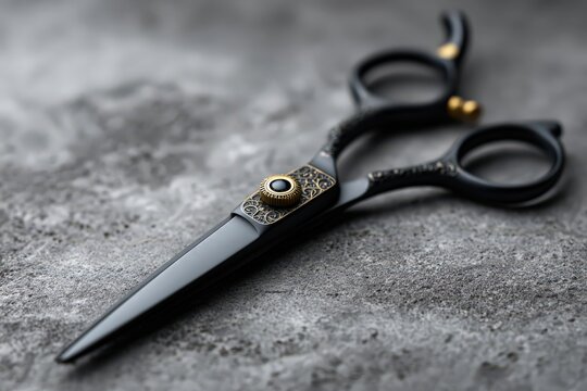 Elegant grooming shears with golden accents for professional stylists and barbers, perfect for hair salons and beauty product marketing materials