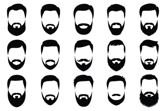 Set of six distinct black vector silhouettes showcasing various modern short male hairstyles for men's fashion and grooming concepts