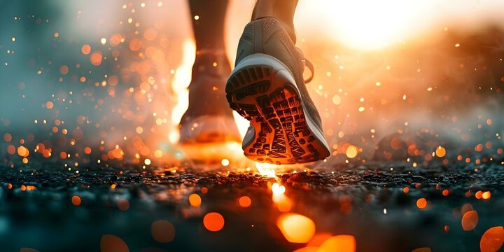 Athletes' Feet Hit Ground Shoes Ignite Flames, Embers Fly Showcasing Power. Concept Athletics, Footwear, flame, Power, Showcase