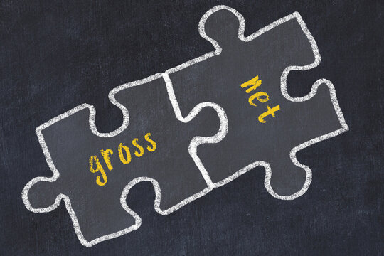 gross income word or concept represented by wooden letter tiles on a wooden table with glasses and a book