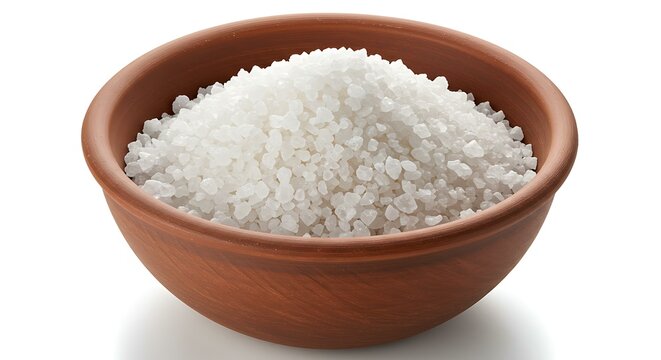 Salt crystals bowl Brazilian Sal Grosso white background. Brazilian food