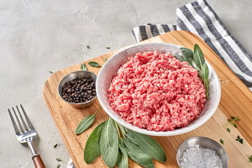 minced meat, pork, beef, forcemeat, isolated on white background, full depth of field