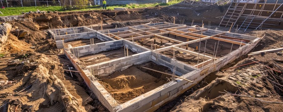 A close-up photo of a concrete foundation with smooth finishing , construction, building, structure, architecture, base