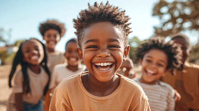 Children's mental health awareness group of happy school kids
