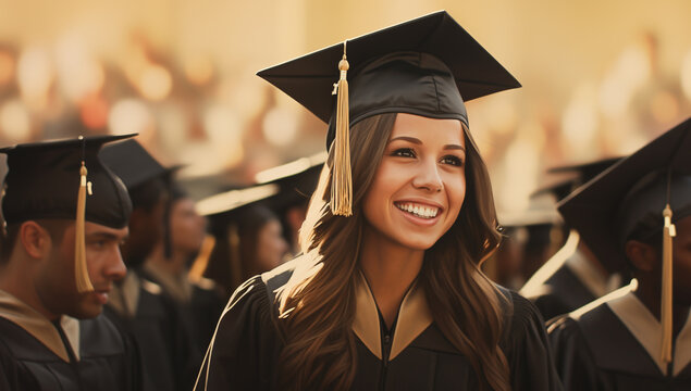 education, graduation and people concept - group of smiling students in mortarboard and bachelor gowns. happy graduate girl in cap and gown with diploma at graduation ceremony outdoors. happy students