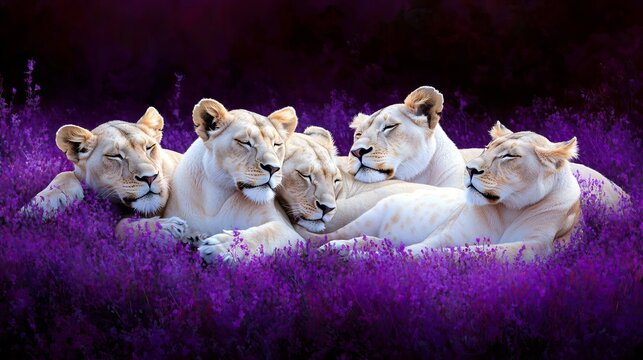 The family of lions lies on the grass. Generative AI