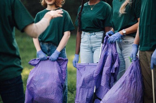 Teen Volunteers Make a Difference A Group of Teens Participate in a Park Cleanup Effort, Working Together to Keep the Environment Clean and Beautiful