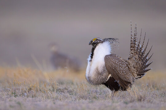 Greater Sage-grouse performs mating dance on the breeding grounds in early spring