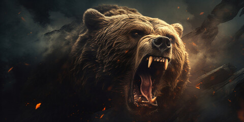 Ragging, Angry, Growling Bear, created with Generative AI Technology, ai, generative