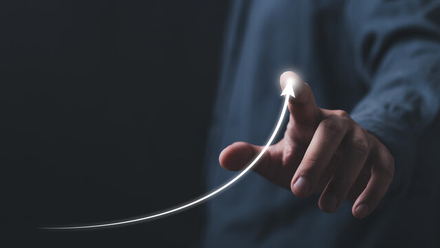 Business development to success and growing growth concept, Businessman pointing arrow graph corporate future growth plan. Global business industry development. Financial plan and strategy.