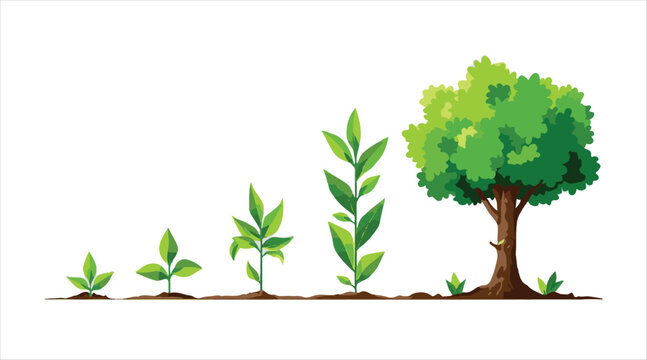 Plant growth phases. Infographic about planting trees. Concept of evolution. Icons for sprout, plant, and tree growth in agriculture. Vector illustration in a flat style.