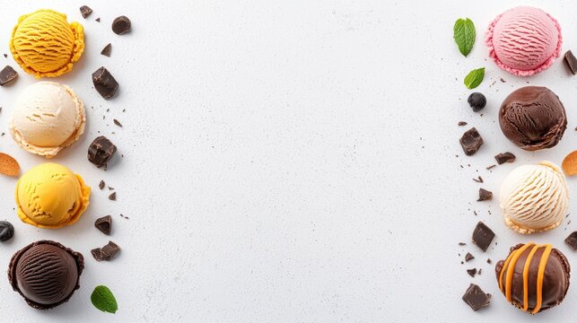 Guilt-free indulgence in frozen treats, featuring non-dairy sorbet and low-fat yogurt, fewer sugars, savored in moderation, clean isolated backdrop