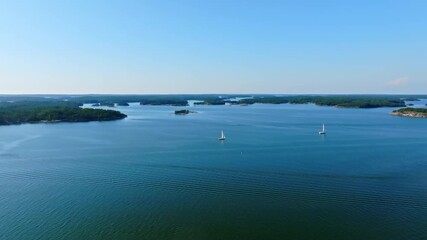 Aerial view toward sailboats in the archipelago on the gulf of Finland, summer