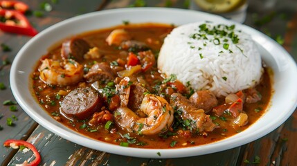 New Orleans Style Gumbo, Gumbo, a rich Creole stew with seafood, sausage, and spices, perfect for authentic Southern cuisine, catering menus, and traditional Louisiana dining.