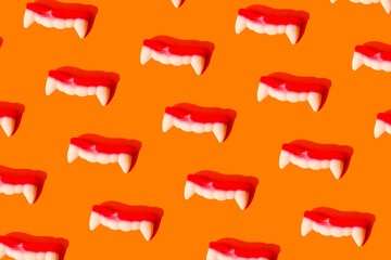 Licorice Candy. Sweet gummy sticks with different flavor, on red background.