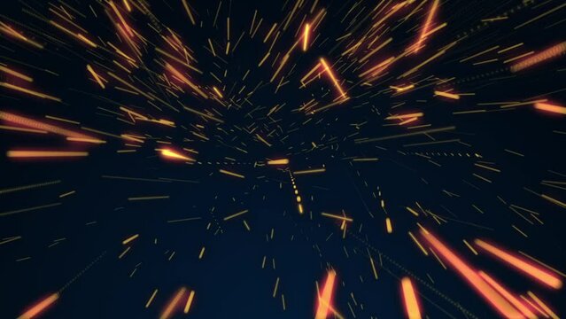 Super fast exploding particles background suggestive of red hot glowing rounds of tracer gunfire ammunition lighting up the night sky. Full HD and looping abstract motion background animation.