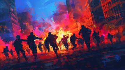 illustration of people shielding each other, forming a human barrier against gunfire