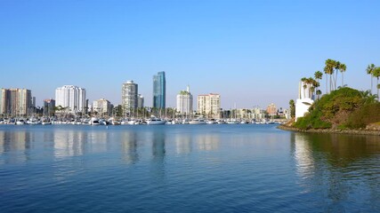 Long Beach, California - January 11, 2025: Picturesque panorama featuring the Long Beach marina and the Island Grissom a wide-angle perspective.