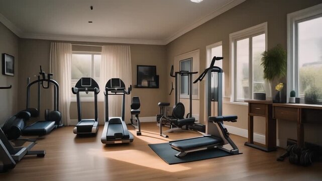 Fitness Room Setup With Various Exercise Machines in a Bright Space